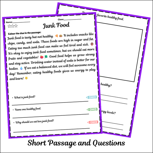 Junk Food | Short Reading Comprehension Creative Worksheet