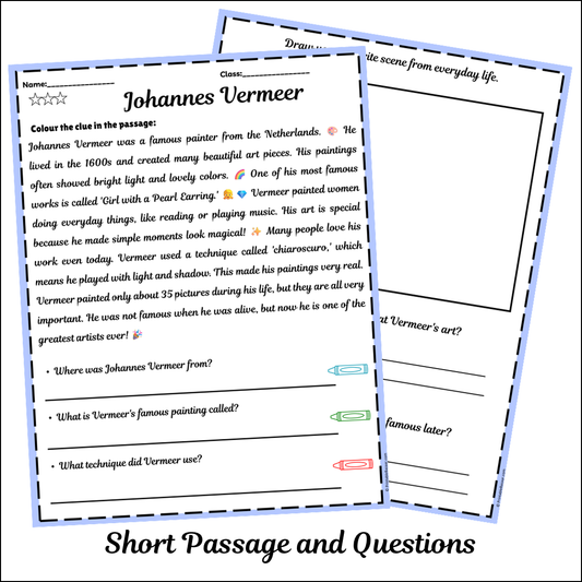Johannes Vermeer | Short Reading Comprehension Creative Worksheet