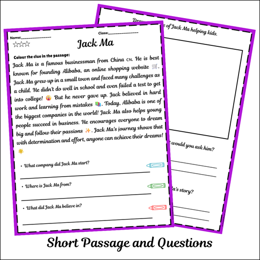 Jack Ma | Short Reading Comprehension Creative Worksheet