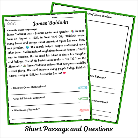 James Baldwin | Short Reading Comprehension Creative Worksheet
