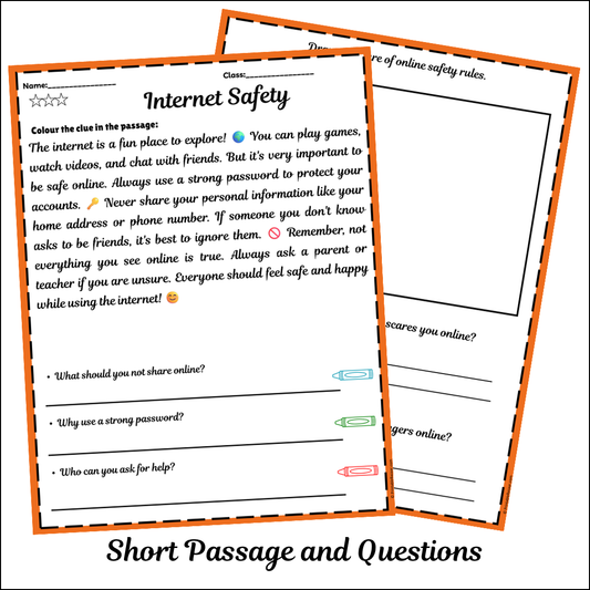 Internet Safety | Short Reading Comprehension Creative Worksheet