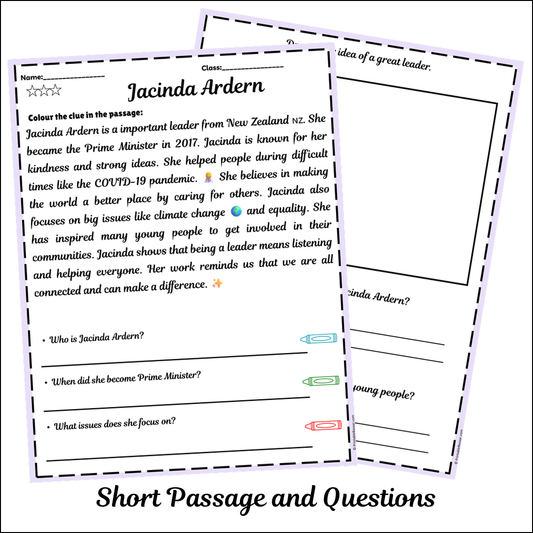 Jacinda Ardern | Short Reading Comprehension Creative Worksheet