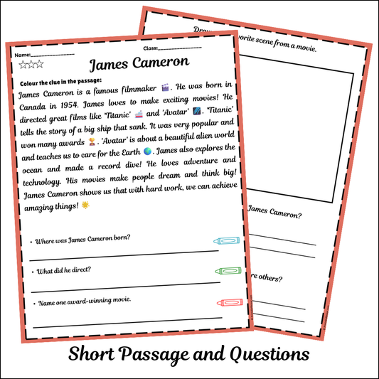 James Cameron | Short Reading Comprehension Creative Worksheet