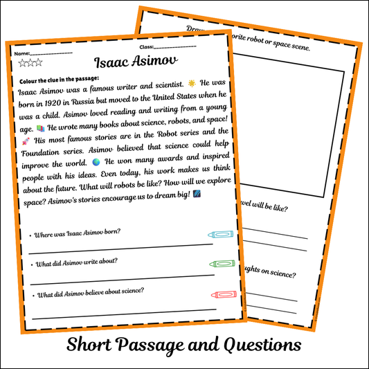 Isaac Asimov | Short Reading Comprehension Creative Worksheet