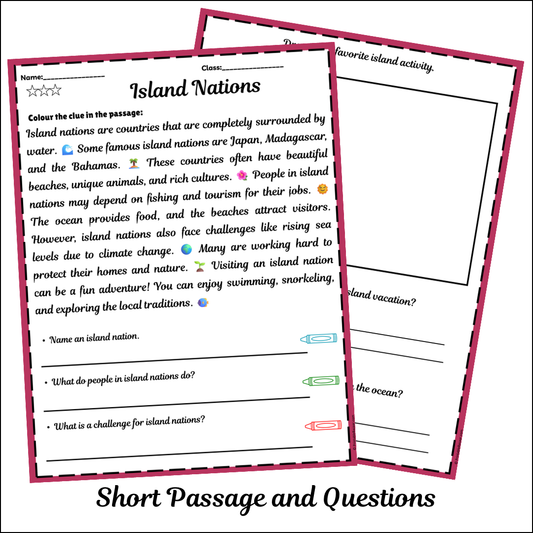 Island Nations | Short Reading Comprehension Creative Worksheet