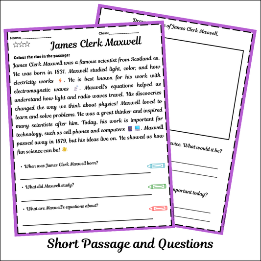James Clerk Maxwell | Short Reading Comprehension Creative Worksheet