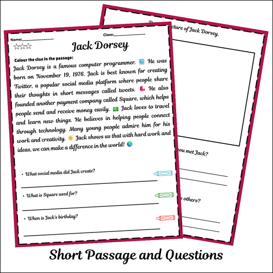 Jack Dorsey | Short Reading Comprehension Creative Worksheet