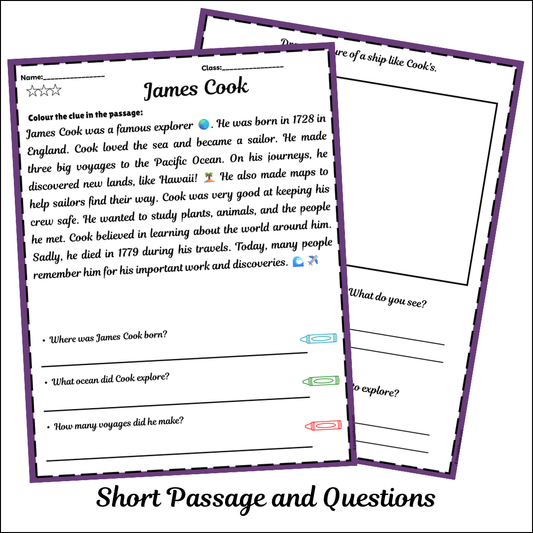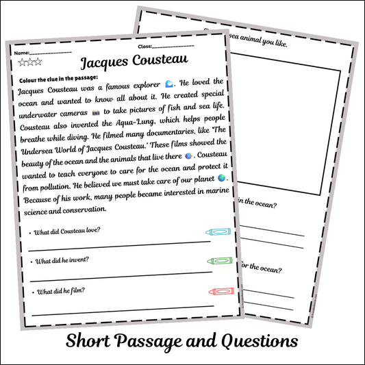 Jacques Cousteau | Short Reading Comprehension Creative Worksheet