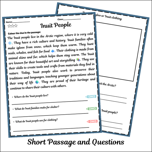 Inuit People | Short Reading Comprehension Creative Worksheet