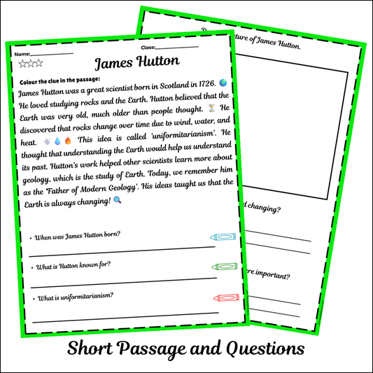 James Hutton | Short Reading Comprehension Creative Worksheet