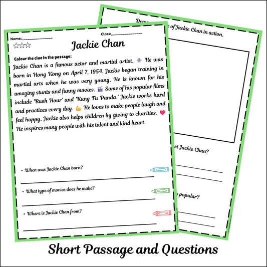 Jackie Chan | Short Reading Comprehension Creative Worksheet