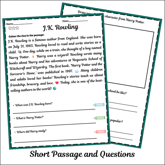 J.K. Rowling | Short Reading Comprehension Creative Worksheet