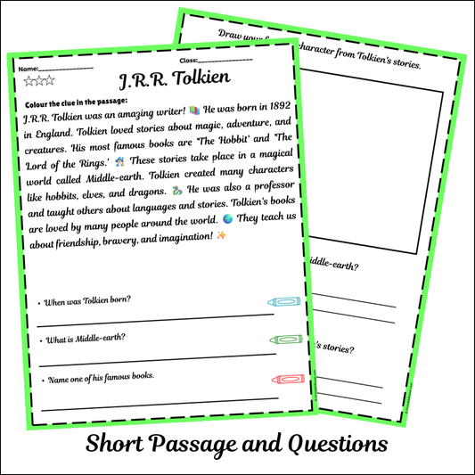 J.R.R. Tolkien | Short Reading Comprehension Creative Worksheet
