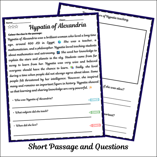 Hypatia of Alexandria | Short Reading Comprehension Creative Worksheet