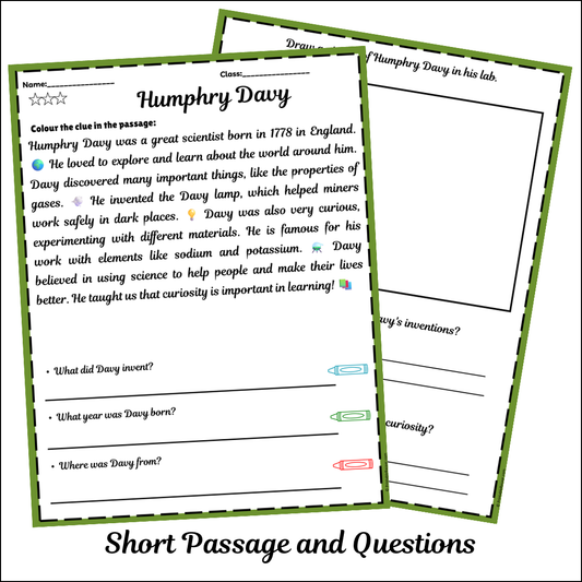 Humphry Davy | Short Reading Comprehension Creative Worksheet