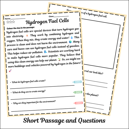 Hydrogen Fuel Cells | Short Reading Comprehension Creative Worksheet