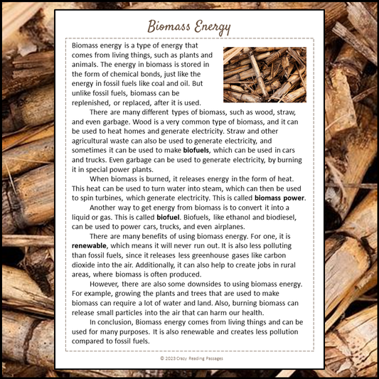Biomass Energy Reading Comprehension Passage and Questions | Printable PDF