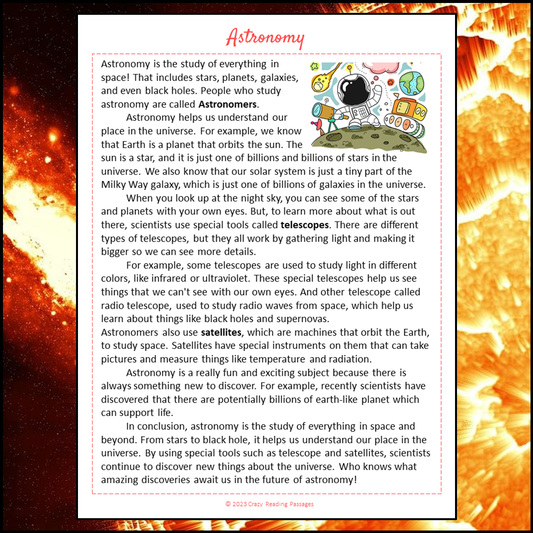 Astronomy Reading Comprehension Passage and Questions | Printable PDF