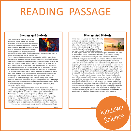 Biomass And Biofuels Reading Comprehension Passage and Questions | Printable PDF