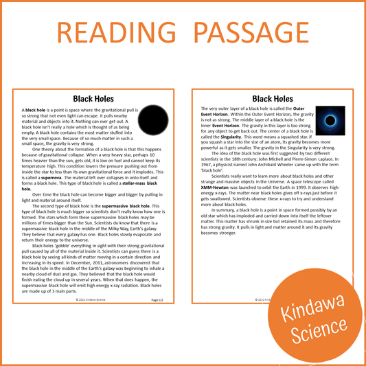 Black Holes Reading Comprehension Passage and Questions | Printable PDF