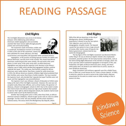 Civil Rights Reading Comprehension Passage and Questions | Printable PDF