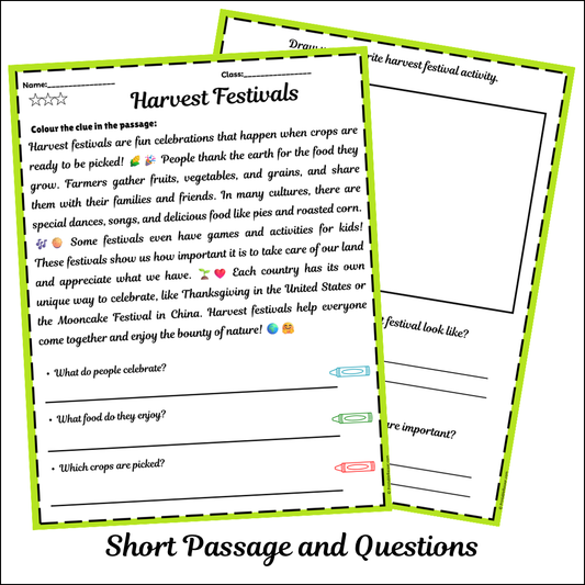 Harvest Festivals | Short Reading Comprehension Creative Worksheet