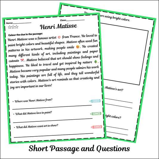 Henri Matisse | Short Reading Comprehension Creative Worksheet