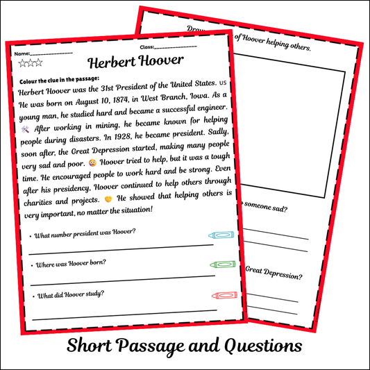 Herbert Hoover | Short Reading Comprehension Creative Worksheet