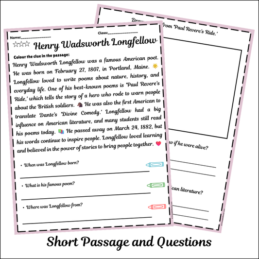 Henry Wadsworth Longfellow | Short Reading Comprehension Creative Worksheet