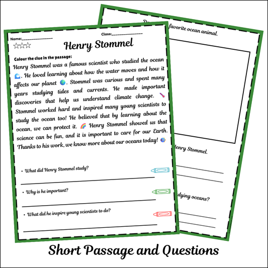 Henry Stommel | Short Reading Comprehension Creative Worksheet
