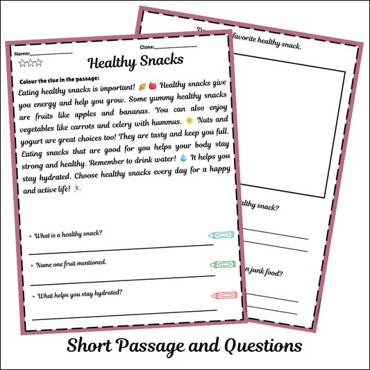 Healthy Snacks | Short Reading Comprehension Creative Worksheet