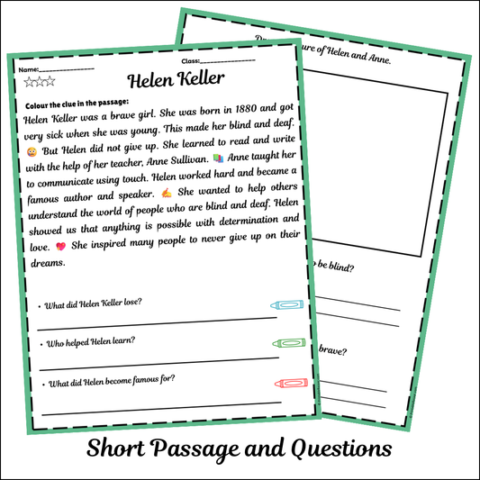 Helen Keller | Short Reading Comprehension Creative Worksheet