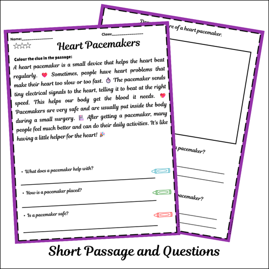 Heart Pacemakers | Short Reading Comprehension Creative Worksheet