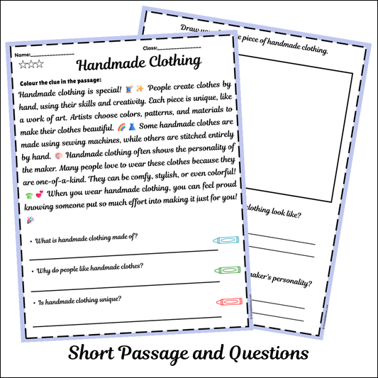 Handmade Clothing | Short Reading Comprehension Creative Worksheet