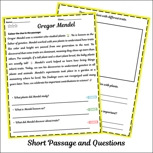 Gregor Mendel | Short Reading Comprehension Creative Worksheet