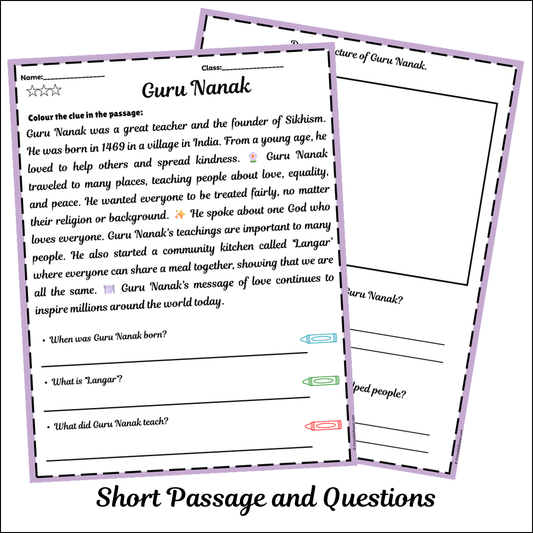 Guru Nanak | Short Reading Comprehension Creative Worksheet