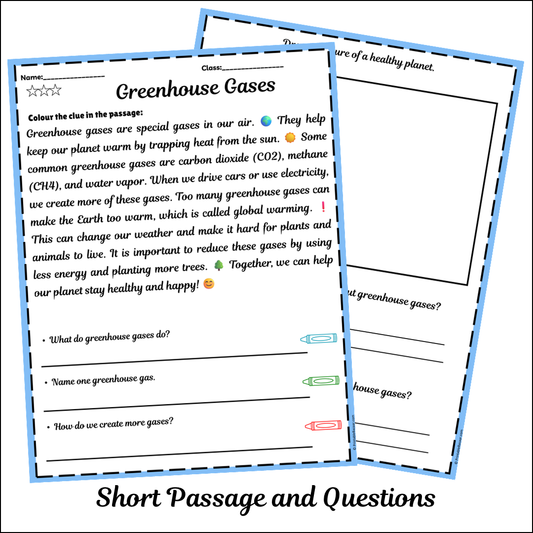 Greenhouse Gases | Short Reading Comprehension Creative Worksheet