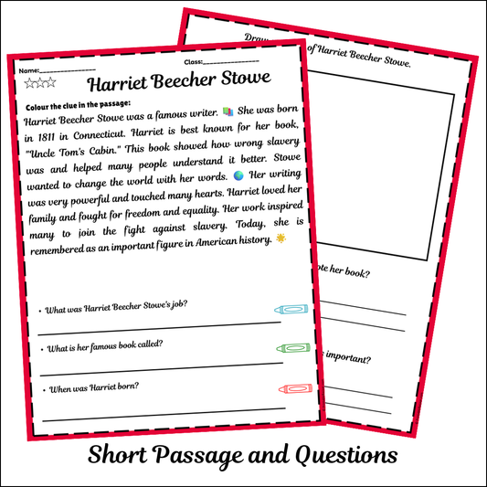 Harriet Beecher Stowe | Short Reading Comprehension Creative Worksheet