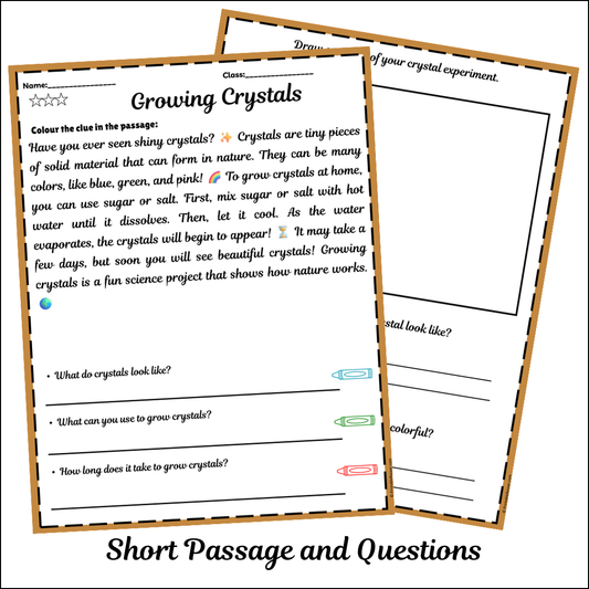 Growing Crystals | Short Reading Comprehension Creative Worksheet