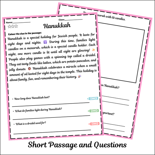 Hanukkah | Short Reading Comprehension Creative Worksheet