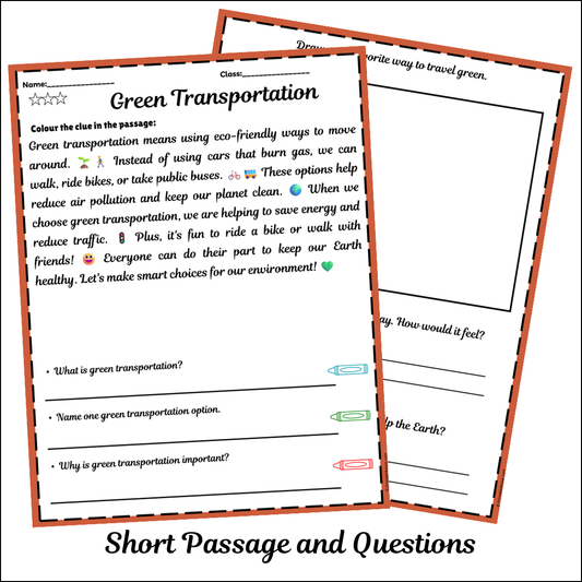 Green Transportation | Short Reading Comprehension Creative Worksheet
