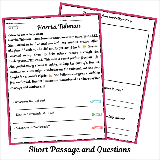Harriet Tubman | Short Reading Comprehension Creative Worksheet