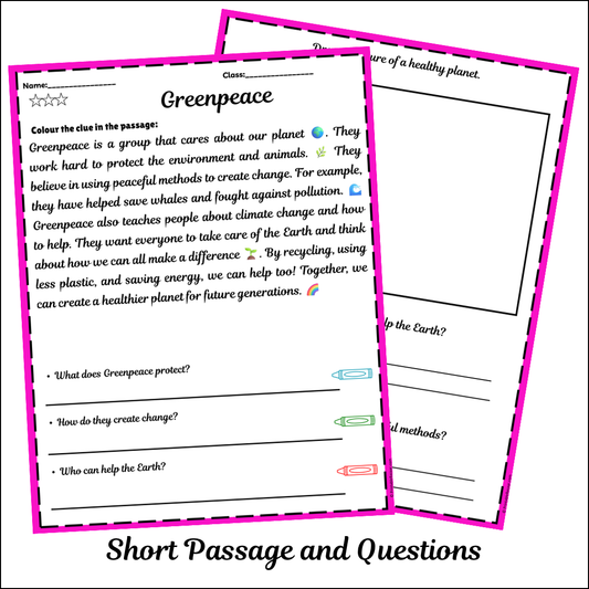 Greenpeace | Short Reading Comprehension Creative Worksheet