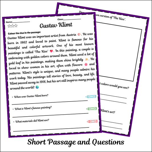 Gustav Klimt | Short Reading Comprehension Creative Worksheet