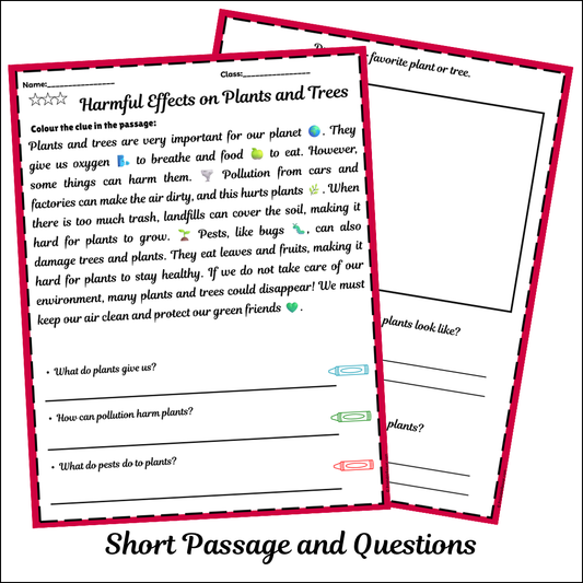 Harmful Effects on Plants and Trees | Short Reading Comprehension Creative Worksheet