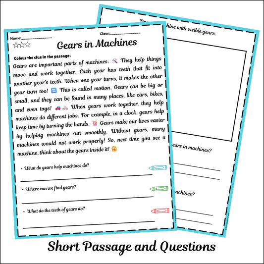 Gears in Machines | Short Reading Comprehension Creative Worksheet