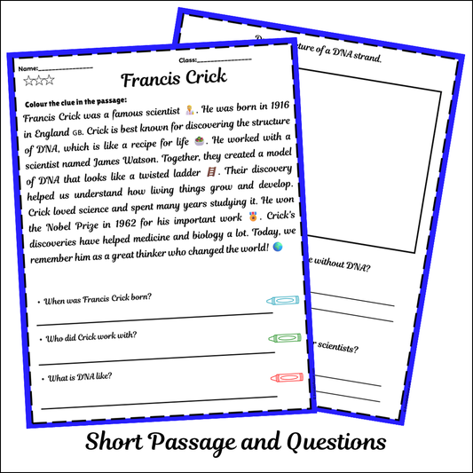 Francis Crick | Short Reading Comprehension Creative Worksheet