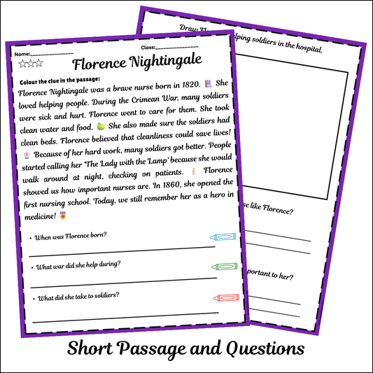 Florence Nightingale | Short Reading Comprehension Creative Worksheet