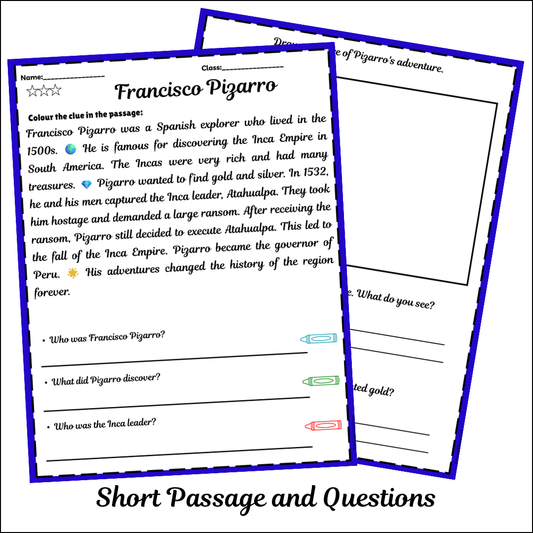 Francisco Pizarro | Short Reading Comprehension Creative Worksheet
