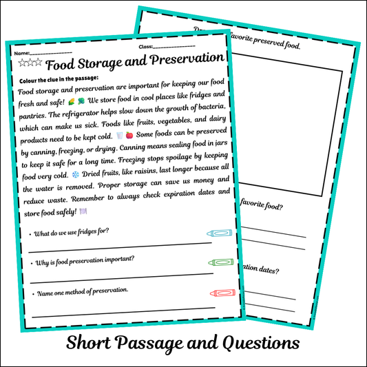Food Storage and Preservation | Short Reading Comprehension Creative Worksheet
